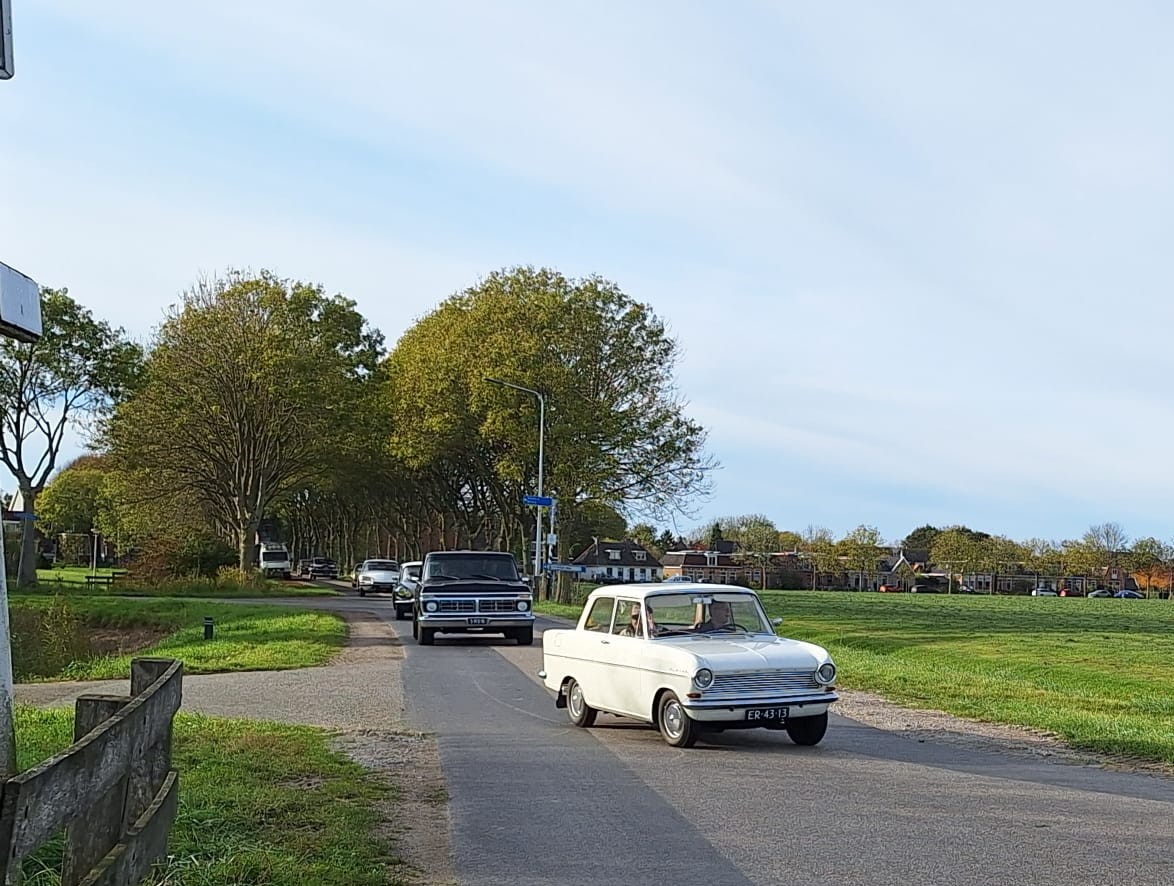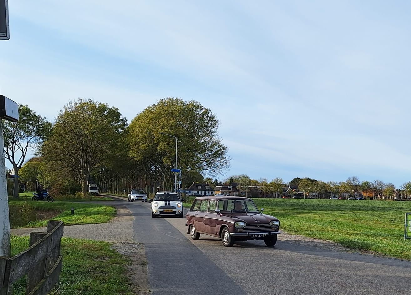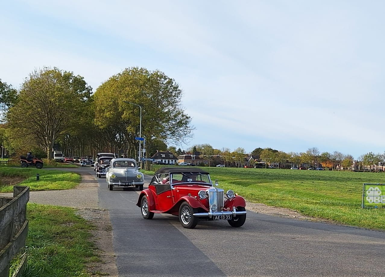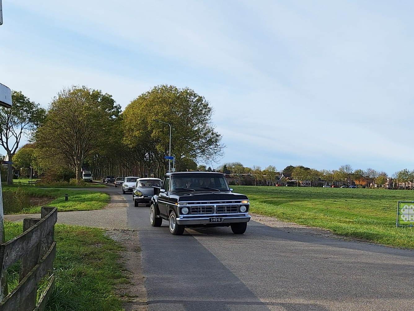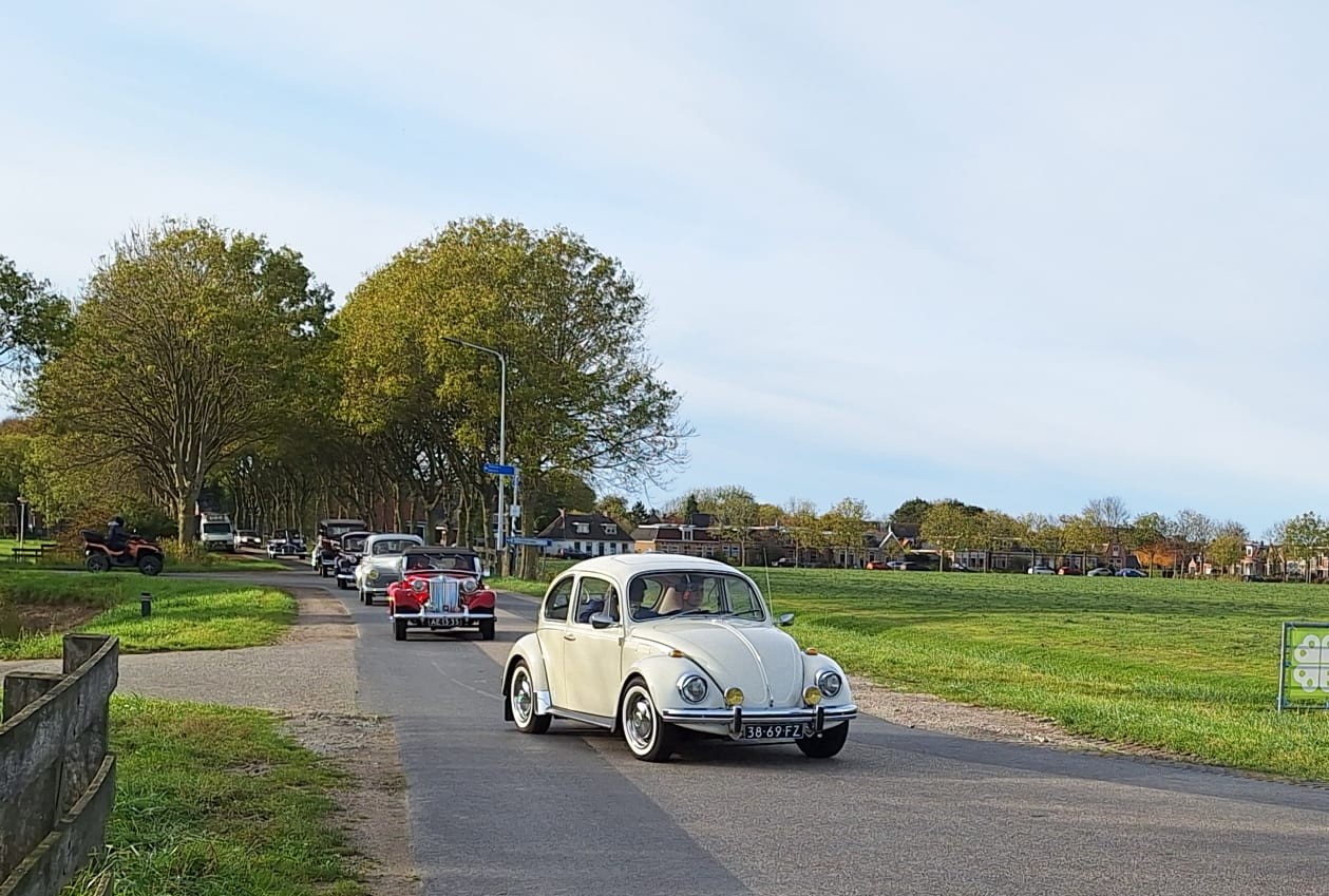 Rond 12.00 uur wordt het al snel gezellig druk op de carpoolplaats tussen Burgum en Sumar. Glimmende oldtimers met al net zulke glimmende gezichten erin; het belooft een prachtige dag te worden! Het weer zit geweldig mee dus de rit gaat enthousiast beginnen om 12.30 uur na een welkom praatje van de voorzitter. Een flinke stoet van 28 auto’s; een geweldig mooie opkomst.