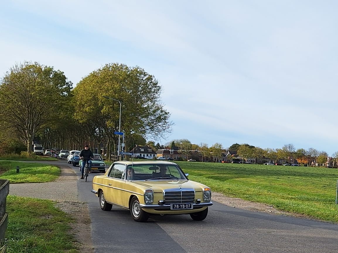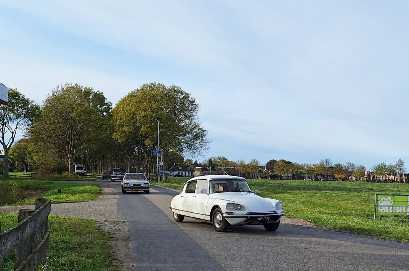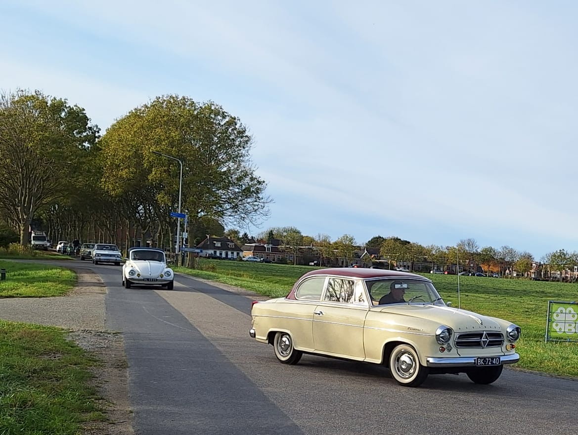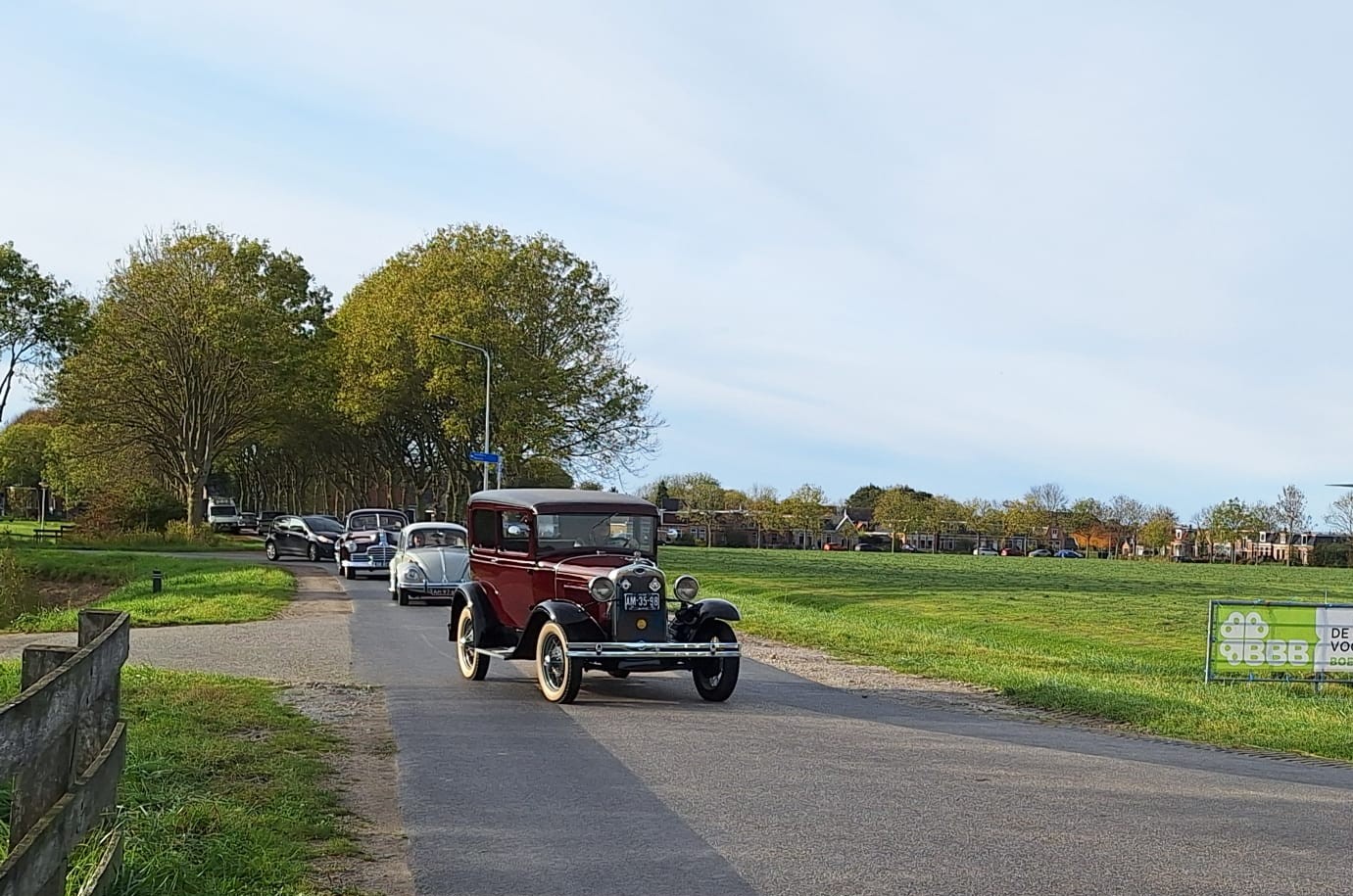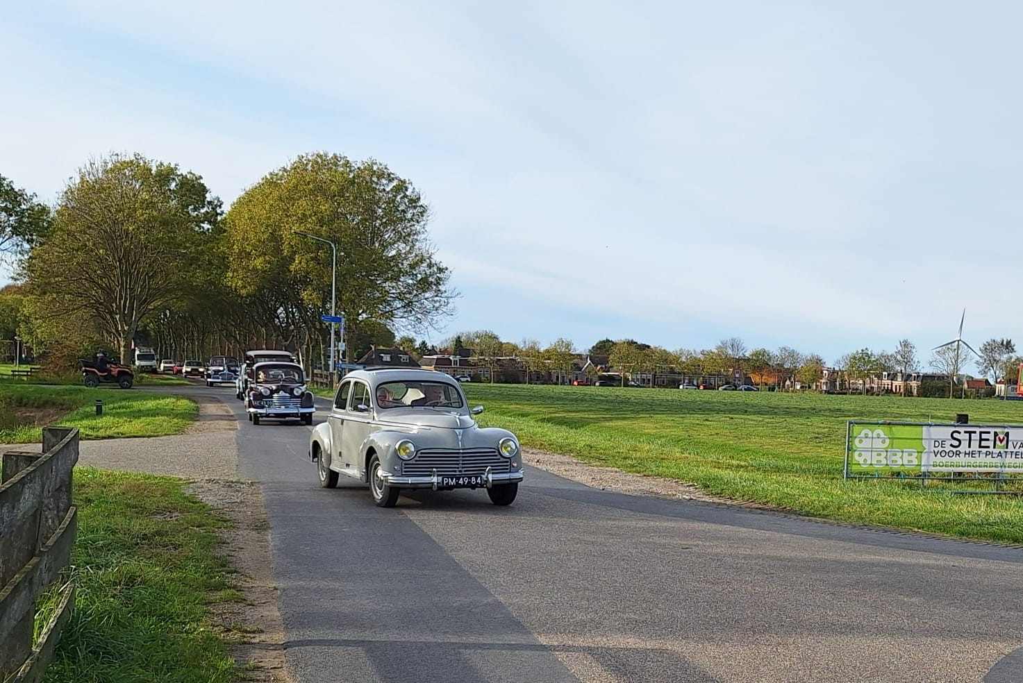 Rond 12.00 uur wordt het al snel gezellig druk op de carpoolplaats tussen Burgum en Sumar. Glimmende oldtimers met al net zulke glimmende gezichten erin; het belooft een prachtige dag te worden! Het weer zit geweldig mee dus de rit gaat enthousiast beginnen om 12.30 uur na een welkom praatje van de voorzitter. Een flinke stoet van 28 auto’s; een geweldig mooie opkomst.